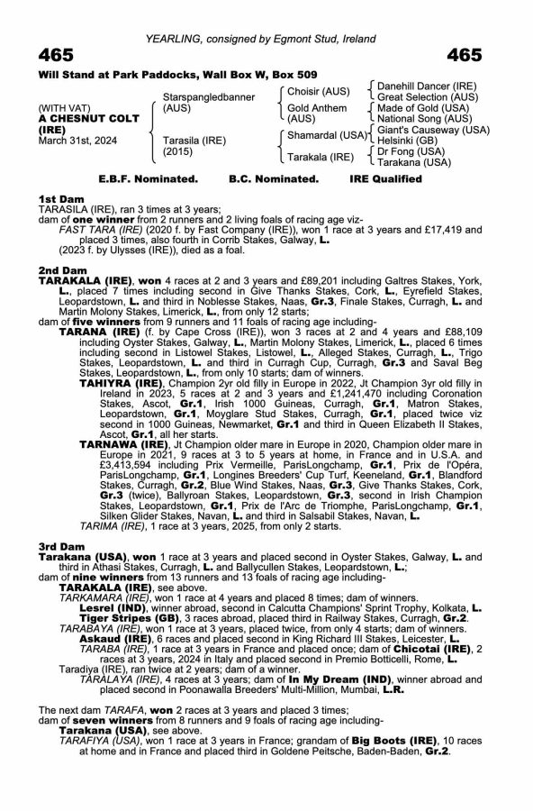 50% for £30,150 +VATMarch 31st 2024, Chestnut Colt (Ire), Starspangledbanner (Aus) x Tarasila (Ire)